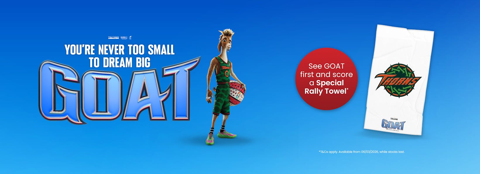 Don’t just watch the game, represent it! Be among the first to see GOAT and grab your special Rally Towel*.