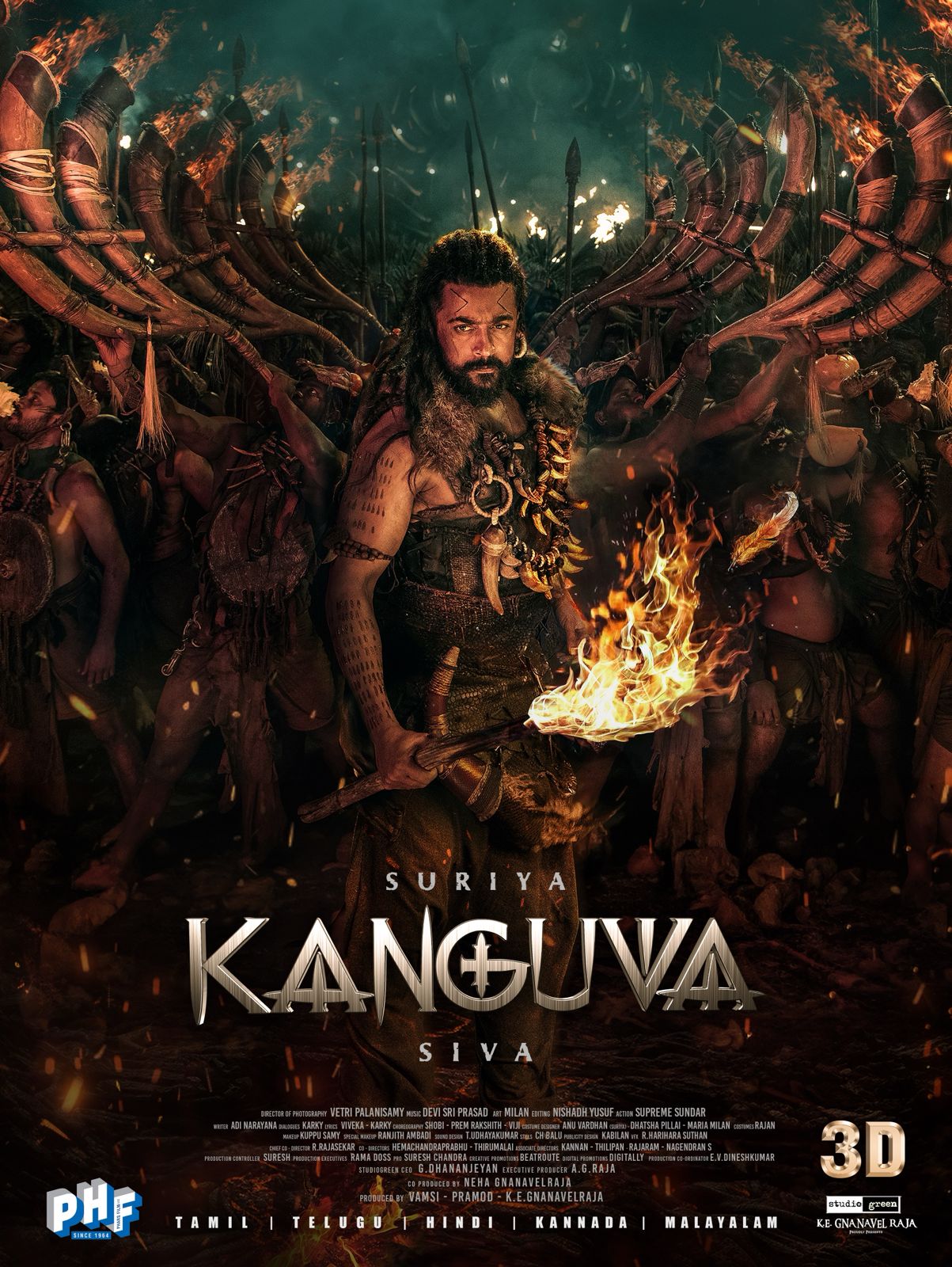 Epic saga of ‘Kanguva’, where ancient valor meets modern-day courage. A tribal warrior’s fierce struggle to save his people a millennium ago is mysteriously linked to a shadow cop’s perilous quest in the present. This gripping emotional tale of heroism across time promises heart-pounding action and a mystery that defies the ages.