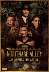When charismatic but down-on-his-luck Stanton Carlisle (Bradley Cooper) endears himself to clairvoyant Zeena (Toni Collette) and her has-been mentalist husband Pete (David Strathairn) at a travelling carnival, he crafts a golden ticket to success, using this newly acquired knowledge to grift the wealthy elite of 1940s New York society. With the virtuous Molly (Rooney Mara) loyally by his side, Stanton plots to con a dangerous tycoon (Richard Jenkins) with the aid of a mysterious psychiatrist (Cate Blanchett) who might be his most formidable opponent yet. A film by Guillermo del Toro.