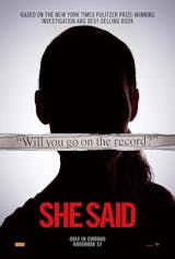 From the Academy Award® winning producers of 12 Years a Slave, Moonlight, Minari, Selma and The Big Short and the Oscar®-nominated producer of Zero Dark Thirty and American Hustle, the film is based on the New York Times bestseller, She Said: Breaking the Sexual Harassment Story That Helped Ignite a Movement.